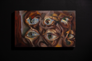 Oğur’un pratiğinde hem bilinçli ifade arayışı hem de rastlantının sunduğu dokular ve görsel oluşumlar birlikte ilerler. Boya, yüzey ve hareket arasındaki etkileşim; önceden planlanmış kompozisyonlarla olduğu kadar, sürecin içinde kendiliğinden ortaya çıkan izlerle de yön bulur. Bu yaklaşım, resmin kontrol ile tesadüf arasındaki hassas dengesini görünür kılar.